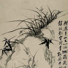 ③蘭花圖:鄭板橋還有很多以蘭花為主題的畫,也表現了一些新的內容,借題畫詩發(fā)揮,寓意對各種各樣事物的看法。如:有的借蘭花特征,透溢出做人勝不驕、敗不餒,持平常心態(tài)的胸臆,題畫詩云:"蘭花與竹本相關,總在青山綠水間,霜雪不凋春不艷,笑人紅紫作客頑。"由蘭花讓人產生聯想,做人要像蘭花一樣幽靜、持久、清香,不浮不躁,不爭艷。咫尺畫幅,拓展無限之大,意境深邃。又如:有的借一叢叢蘭花,夾著一些荊棘的自然現象,抒君子能寬容小人之大度的氣質。《荊棘叢蘭石圖》題畫詩云:"不容荊棘不成蘭,外道天魔冷眼看,看到魚龍都混雜,方知佛法浩漫漫。"另一幅《荊棘叢蘭石圖》題云:"滿幅皆君子,其后以荊棘終之何也?蓋君子能容納小人,無小人亦不能成君子,故棘中之蘭,其花更碩茂矣。"板橋匠心獨運,蘭花中穿插幾枝荊棘,畫蘭花與荊棘共存,表達了遇有小人,虛懷若谷、和睦共處,"歷經磨練,方成英雄"的寬宏大量之胸懷,讀畫者亦受益匪淺。越讀越感簡單的植物具有高深的意境,樂趣無窮。縱觀鄭板橋筆下所畫的蘭竹石,細品題畫詩,我們不難看出,他喜畫蘭竹石的緣由,正如他所云:"四時不謝之蘭,百節(jié)長青之竹,萬古不敗之石,千秋不變之人",而"為四美也"。"有蘭有竹有石,有節(jié)有香有骨"。在他眼中,蘭竹石,能代表人堅貞不屈,正直無私,堅韌不拔,心地光明,品格高潔等品格,因而其題畫詩的字字句句,托物言志,意境深遠。