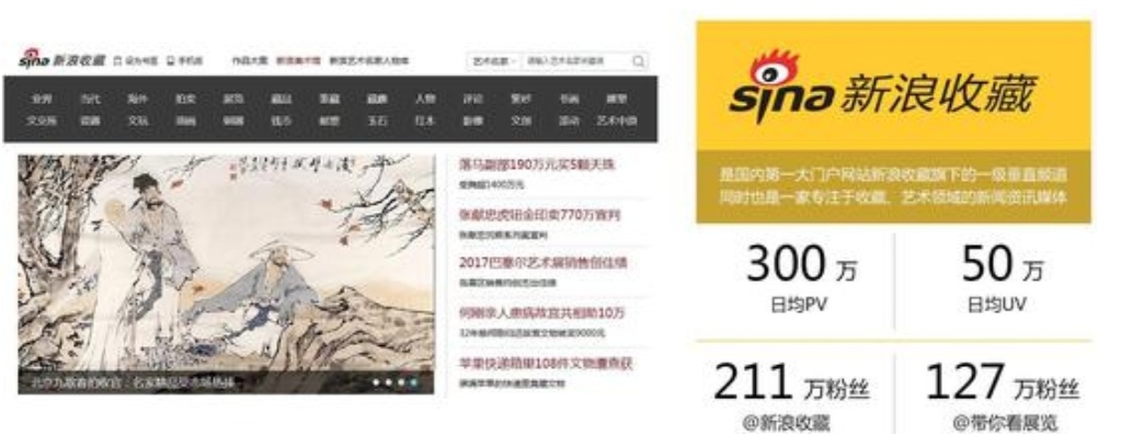 藝術(shù)品電商傳統(tǒng)的“商品陳列式”銷(xiāo)售也將成為過(guò)去式。專(zhuān)業(yè)的藝術(shù)媒體新浪收藏將助力寶庫(kù)匯藝術(shù)品的銷(xiāo)售。新浪收藏作為新浪旗下的文化藝術(shù)領(lǐng)域的權(quán)威媒體,提供書(shū)畫(huà)、瓷雜、玉器、紅木等各類(lèi)收藏資訊,擁有超過(guò)400萬(wàn)粉絲,頁(yè)面瀏覽量更是達(dá)到日均300萬(wàn)。新浪收藏將為每一位‘寶庫(kù)匯’會(huì)員開(kāi)設(shè)專(zhuān)屬頻道,會(huì)員將依托新浪收藏的渠道力量,實(shí)現(xiàn)傳播裂變,增強(qiáng)會(huì)員品牌影響力。