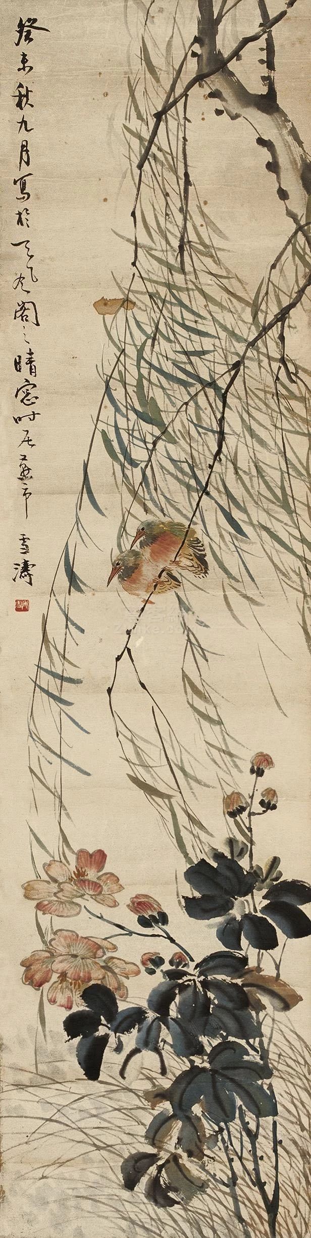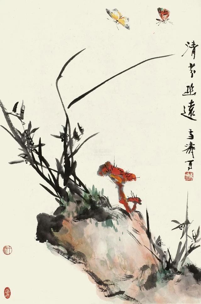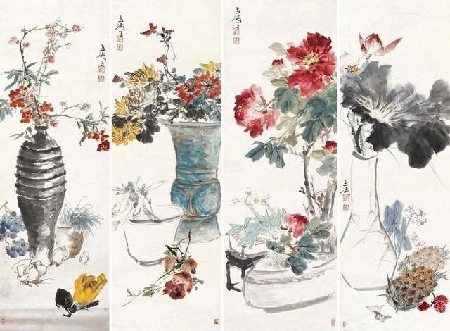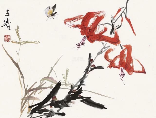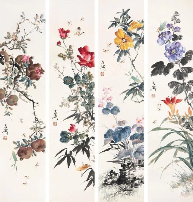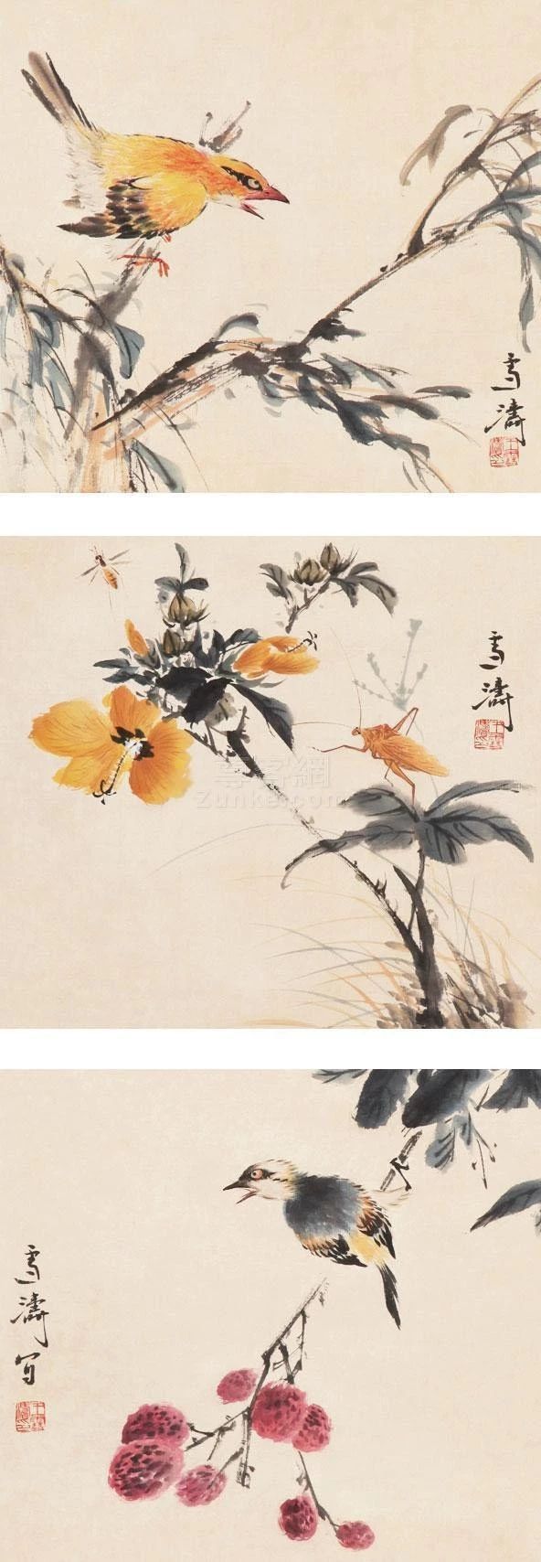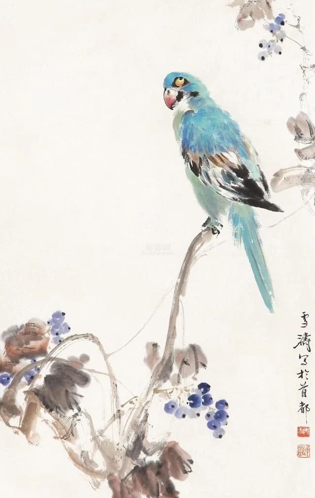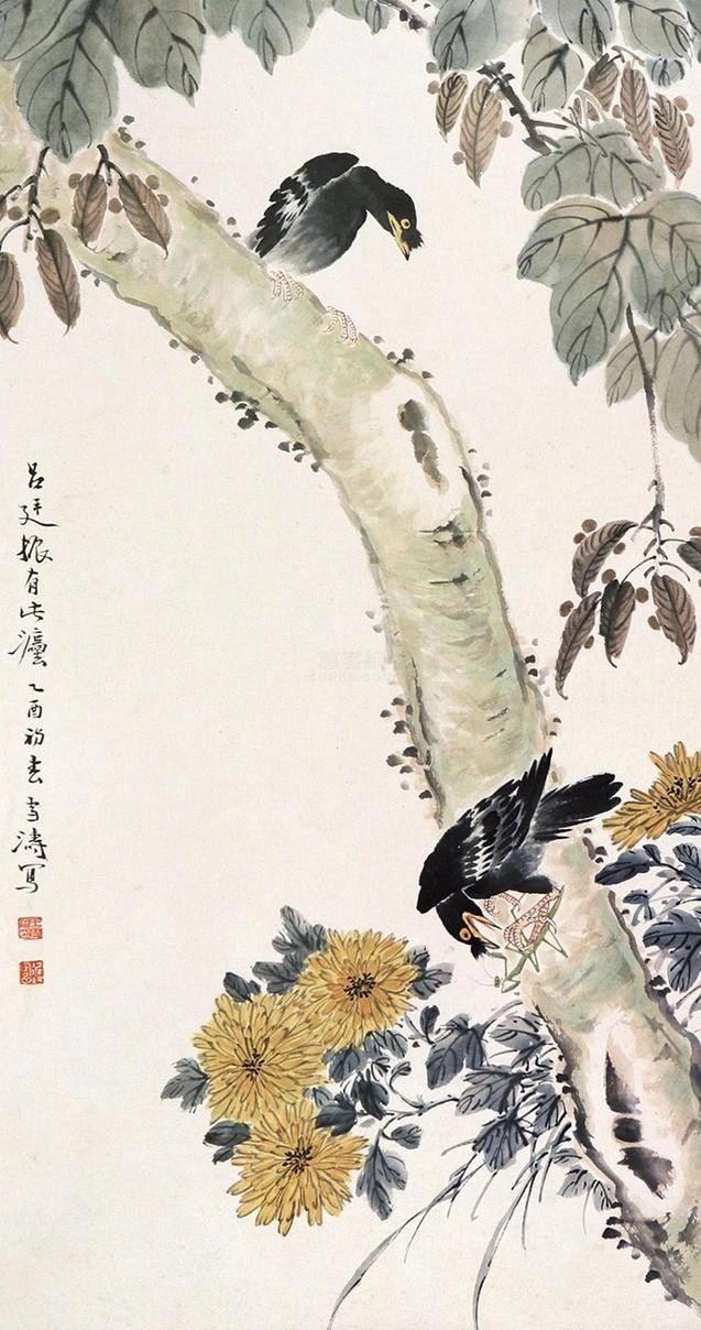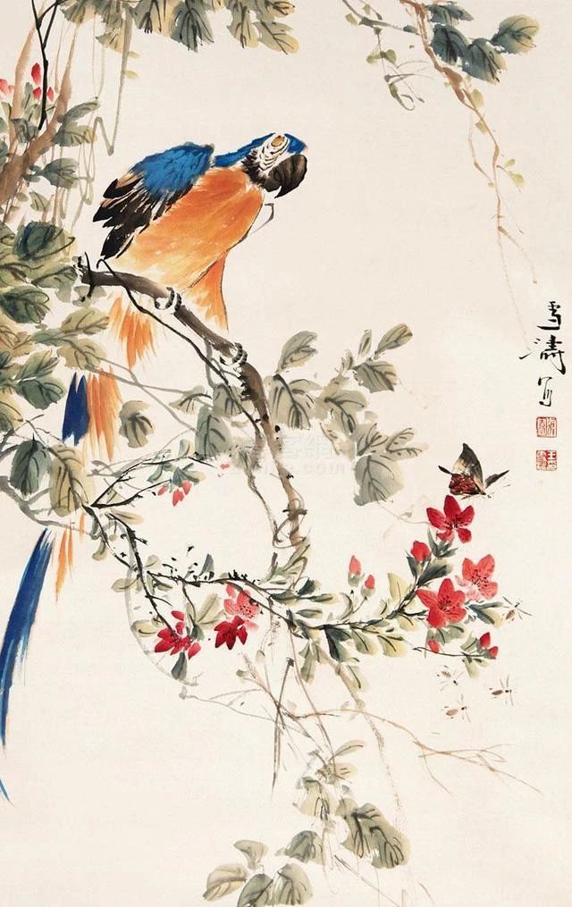 在傳統(tǒng)固有色中融入西洋畫法講求的色彩規(guī)律,為畫面增添韻律。他筆下的花鳥蟲魚,刻畫細(xì)致入微,鮮活多姿,情趣盎然。二十世紀(jì)五、六十年代其花鳥畫已達(dá)到一個藝術(shù)高峰,至今無人出其右。