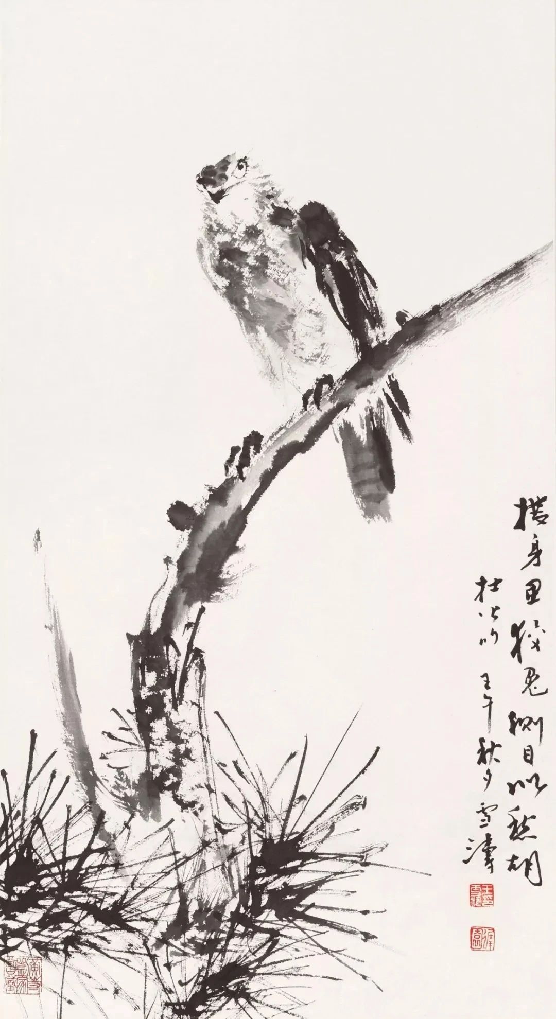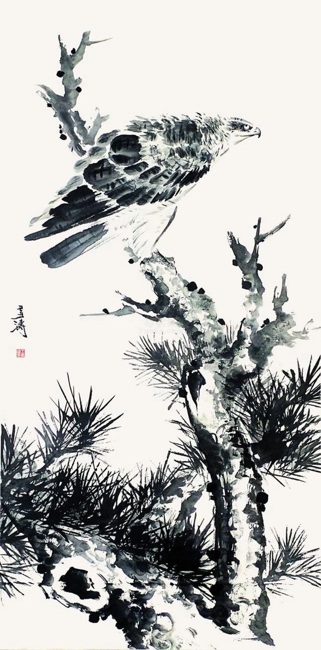 他的學(xué)習(xí)是創(chuàng)造性的學(xué)習(xí),用這種方式去真正了解古人畫作里的精神。”溫瑛說,“臨王乾的《雙鷹圖》,原畫作的山感覺比較滿,他改成植物,而且把其中一只鷹的頭扭過來。