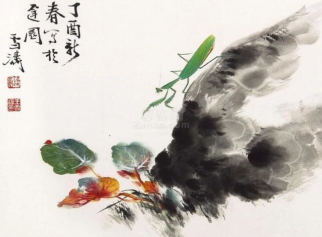 王雪濤善于描繪花鳥世界的豐富多彩和活潑生氣,尤善于描繪大自然中的小生命,如蝴蝶、螳螂、蟈蟈、天牛、青蛙、蜻蜓、馬蜂等,栩栩如生,引人喜愛。