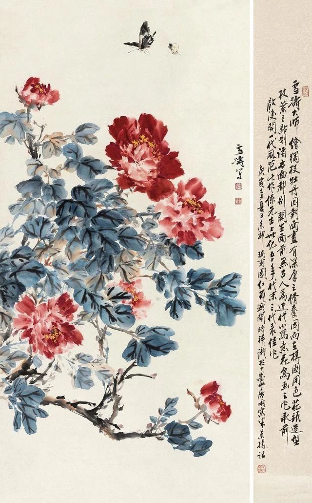 1933年,題其書畫合璧冊道:吾賢下筆如人意,羨汝成名鬢未絲。次年又題作:藍(lán)已青矣。可見在白石老人心里,青年王雪濤已是位置高標(biāo)了。王雪濤的繪畫取材豐富,筆墨沉著又飄逸,設(shè)色秾艷卻和諧,兼工帶寫,時常也借鑒西畫之圖式與手段,但卻毫無刻露之習(xí)。
