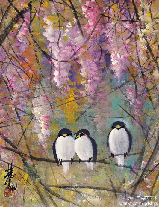 婁師白 作品《紫藤小鴨》