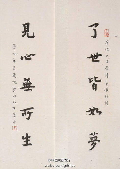 【賞析】弘一法師為世人留下了咀嚼不盡的精神財富,他的一生充滿了傳奇色彩,是中國絢麗至極歸于平淡的典型人物。趙樸初先生評價他的一生為:“無盡奇珍供世眼一輪圓月耀天心。” 出自《華嚴集聯(lián)三百》,是近代高僧弘一法師的書法代表作。“了世皆如夢,見心無所生;于法得自在,知身如虛空