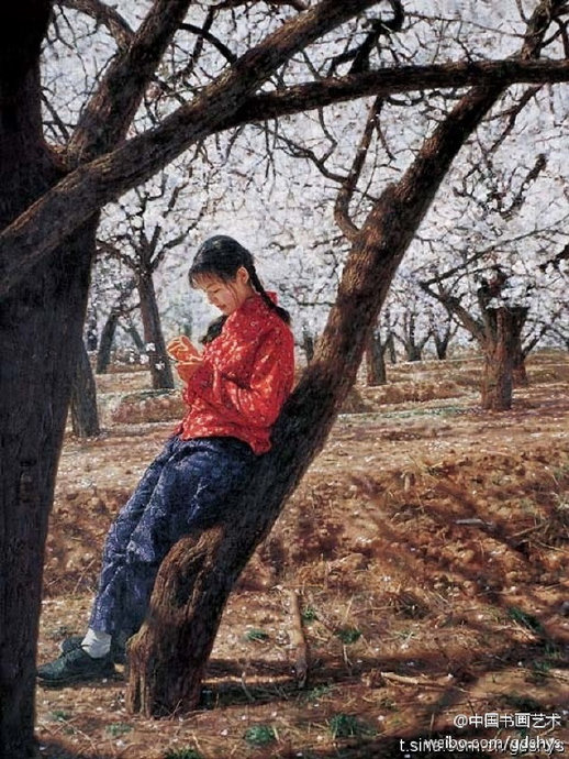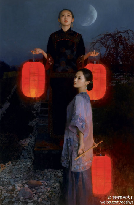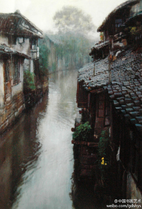 【賞析】陳逸飛的用筆多種多樣,特別畫水的用筆如行云流水,灑脫流暢,筆觸有大有小。老墻上的斑痕更是手段老辣,有意到筆不到的感覺。千年滄桑,千年風雅,在陳逸飛的構(gòu)圖里用光、用色、用筆觸給人留下無限想象空間……
