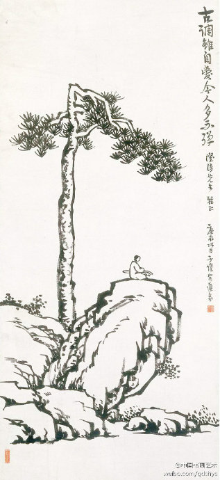 【賞析】“古調(diào)雖自愛,今人多不彈”。 “泠泠七弦上,靜聽松風寒;古調(diào)雖自愛,今人多不彈”(語出唐代劉長卿)。豐子愷的漫畫創(chuàng)作很多是從畫古詩詞意境開始的,在這些以古詩詞為題的漫畫里,典雅的意境和濃厚的生活氣息毫無矛盾。