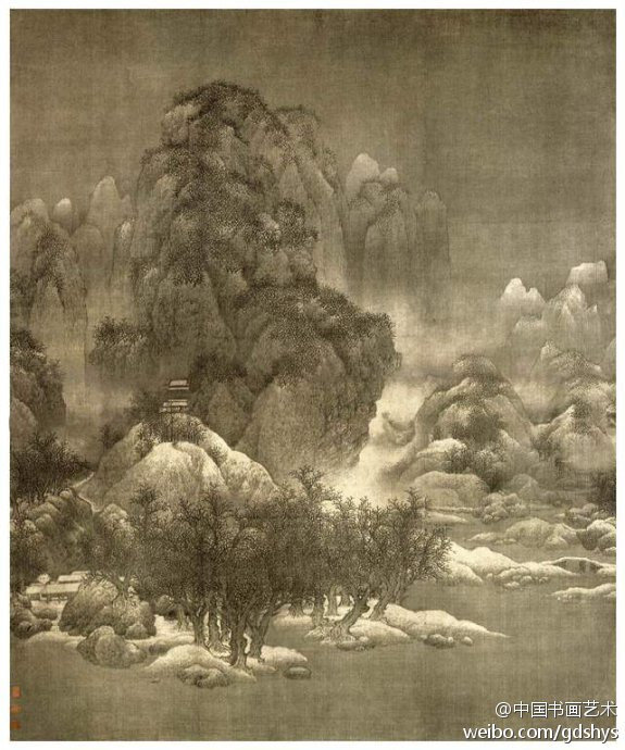 【賞析】此作原屬圓明園收藏,現(xiàn)藏于天津市博物館。此作畫面氣勢磅礴,境界深遠,動人心魄,生動地描繪出秦地雪后山川、林塑如詩景象,筆墨濃重潤澤,層次分明,皴擦、渲染并用,為北宋范寬代表作之一。