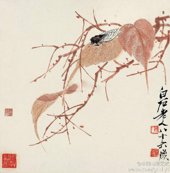 齊白石 作品《知了三貝葉》