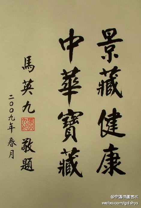 【賞析】馬英九不僅書寫春聯(lián),批“總統(tǒng)府”公文也用毛筆。據(jù)馬英九辦公室透露,馬英九過去在擔任臺北市長的時代就偶爾會用毛筆來批公文,現(xiàn)在更是頻繁地使用毛筆批公文,也許是對自己的書法有一定的信心吧。