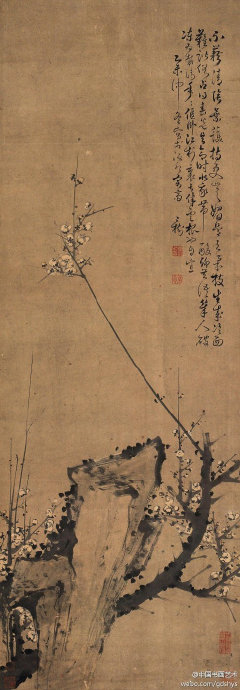【賞析】童鈺的墨梅,蒼老古樸,墨氣雄厚,時稱“絕技”。畫中題詩云:不藉清陰葉護持,更無媚骨與柔枝。生成冷面難諧俗,占得春光豈命時。似我?guī)峤K無語,幾人破凍為裁詩。年年偃臥江□里,長伴云根也自宜。