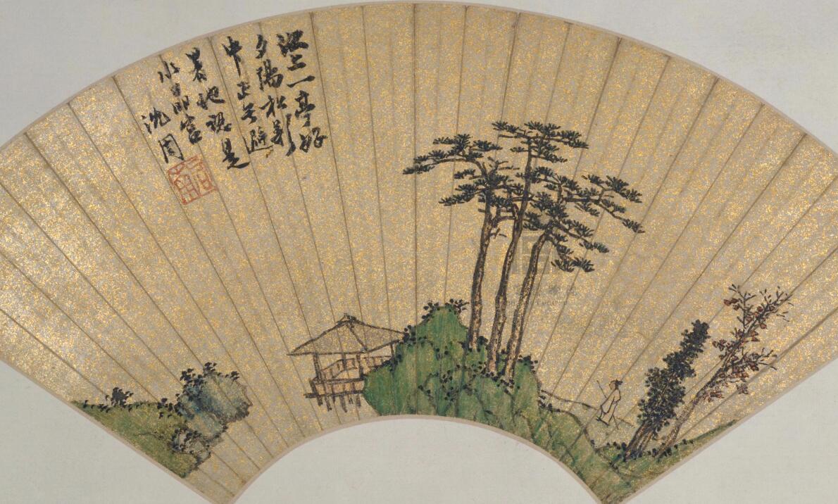 《江亭避暑圖》扇頁 明 沈周 金箋設(shè)色