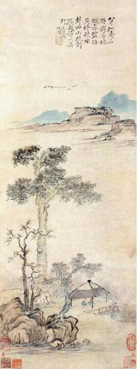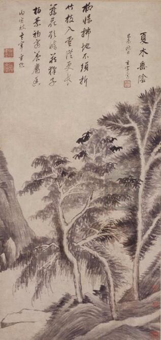 《夏木垂陰圖》軸 明 董其昌 紙本墨筆