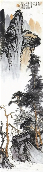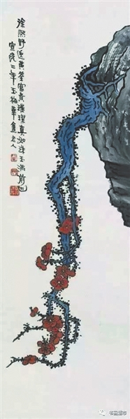 《梅石圖》(左圖)構(gòu)圖渾古樸茂,畫(huà)面空靈,以篆書(shū)筆法入畫(huà),繪石頭與梅花,兼顧形象與質(zhì)感,筆與物象渾然天成、相得益彰,既表現(xiàn)出了梅花枝干的蒼勁,又表現(xiàn)了梅花的傲霜之氣。巨石古拙更寄予了作者內(nèi)心的孤寂悲涼之情,完全與畫(huà)境相合。《松石圖》(右圖)松樹(shù)枝干和石頭也是筆法古拙,遒勁老辣,畫(huà)面意境蒼茫。