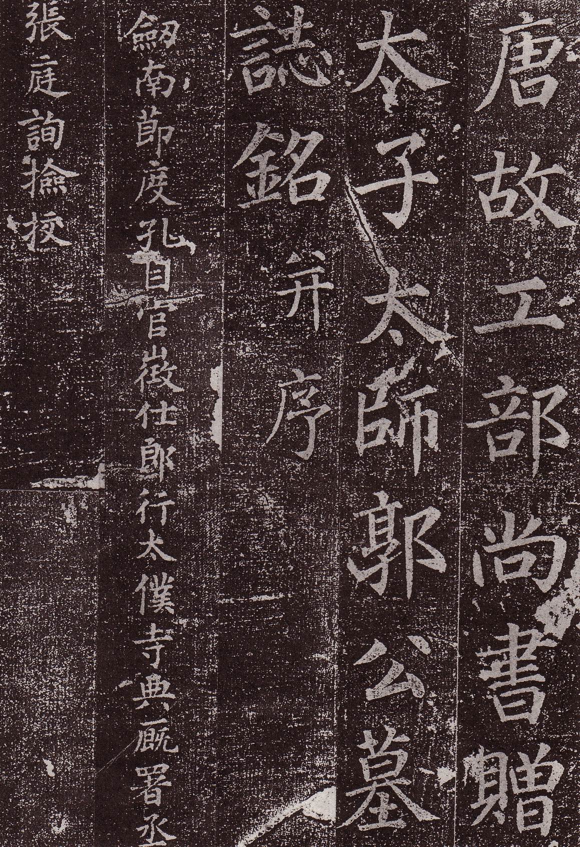 唐代宗廣德二年(764年) 五十六歲 正月,除檢校刑部尚書兼御史大夫, 充朔方行營、汾晉等六州宣慰使,奉詔宣諭仆固懷恩,未行。留知省事。二月,書《與李太保帖》。三月二十二日,晉爵魯郡開國公,食邑三千戶。八月,撰《和政公主神道碑銘》。十一月,撰《與郭仆射書》,譴責(zé)尚書右仆射郭英 排座次時(shí)諂媚觀軍容使、宦官魚朝恩。撰并正書《郭氏家廟碑》,行書《郭公廟碑陰記》,撰《李光弼神道碑銘》。