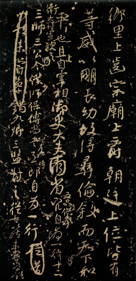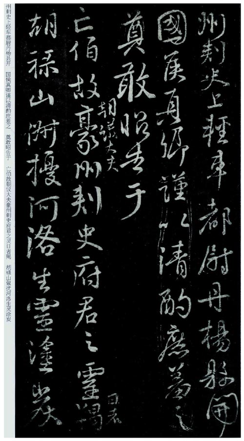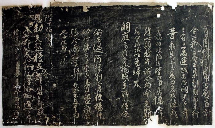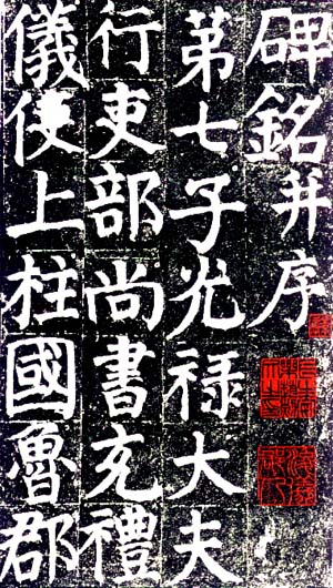 此碑精拓本鮮見。宋拓本剜鑿甚少,損字可辨,碑陽“頡〓”之“頡”左上與 “頏”字均未損。“跆藉 勢”之“ ”字未剜成“貴”。“京都”二字損壞不甚。 “既濁能清”之“濁”字未損。碑陰“瑯邪”二字未損。明代后期“ ”字已剜成 “貴”。由于此碑石質(zhì)粗劣,隨著時(shí)間延移剝落增加,碑下部尤甚,很多字幾不可 識。有翻刻本,其中亦有精良者。