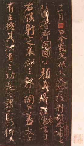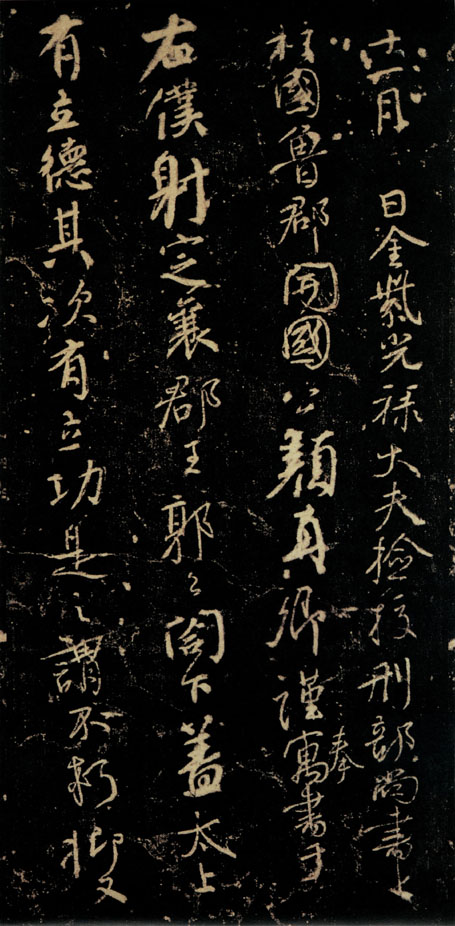 天寶十一載(752年) 四十四歲 三月,兵部改為武部,任武部員外郎。本月,立自撰并正書《郭虛己碑》、《郭揆碑》。四月二十二日,在千福寺內(nèi)立應(yīng)楚金禪師之請所書《大唐西京千福寺多寶佛塔感應(yīng)碑》。同月,書《扶風(fēng)夫子廟碑》。