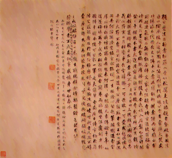 仆自停裴儆宅,月馀,因與裴儆從長史言話散,卻回長史前請?jiān)?middot;“仆既承九丈獎?wù)T,日月滋深,夙夜工勤,耽溺翰墨,雖四遠(yuǎn)流揚(yáng),自未為穩(wěn),倘得聞筆法要訣,則終為師學(xué),以冀至于能妙,豈任感戴之誠也!"長史良久不言,乃左右盼視,怫然而起。仆乃從行歸于東竹林院小堂,張公乃當(dāng)堂踞坐床,而命仆居乎小榻,乃曰:“書法玄微,難妄傳授。非志士高人,詎可言其要妙?書之求能,且攻真草,今以授予,可須思妙。"