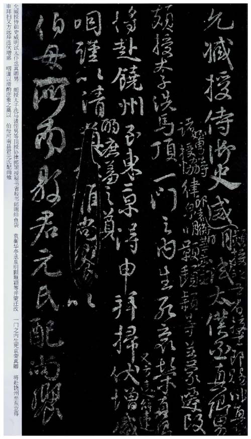 書于大歷七年(772年)。拓本。行書,序文。35.6×16.5厘米。凡22行,計(jì)159 字。浙江省博物館藏南宋留元剛《忠義堂帖》本。真跡著錄首見宋米芾《書史》,系顏真卿送劉太沖西游時(shí)所作。劉太沖為顏真卿天寶末年平原舊友,廣德元年吏部屬吏,宣城陳留人蕭穎士子弟,劉太真之兄。據(jù)米芾《書史》記載,此帖真跡原為王欽臣故物,后為唐所得,將其中“ 才不偶命,而德其無鄰”一行字剪去,而《忠義堂帖》卻依然留存。此序首末皆有缺字,可見當(dāng)時(shí)真跡就已經(jīng)損泐。《忠義堂帖》起首所缺“劉太沖者彭”五字,由朱筆小字校補(bǔ),序末也有朱筆題跋六行,均為清人孫承澤手筆。