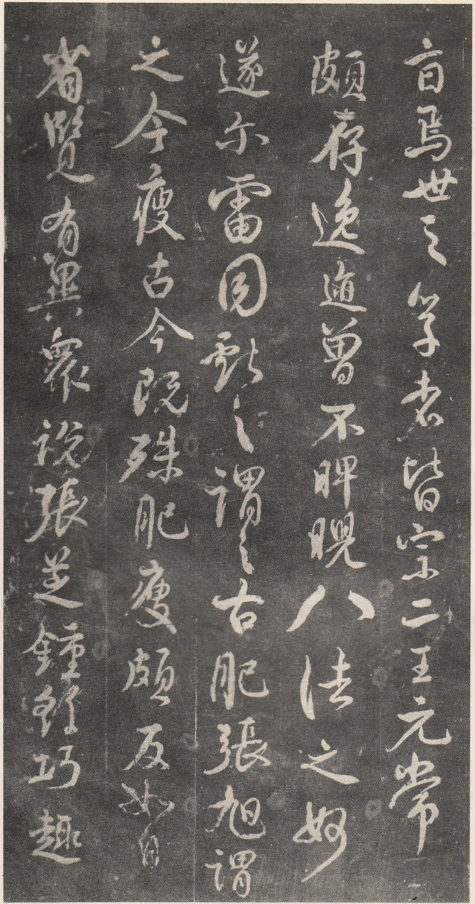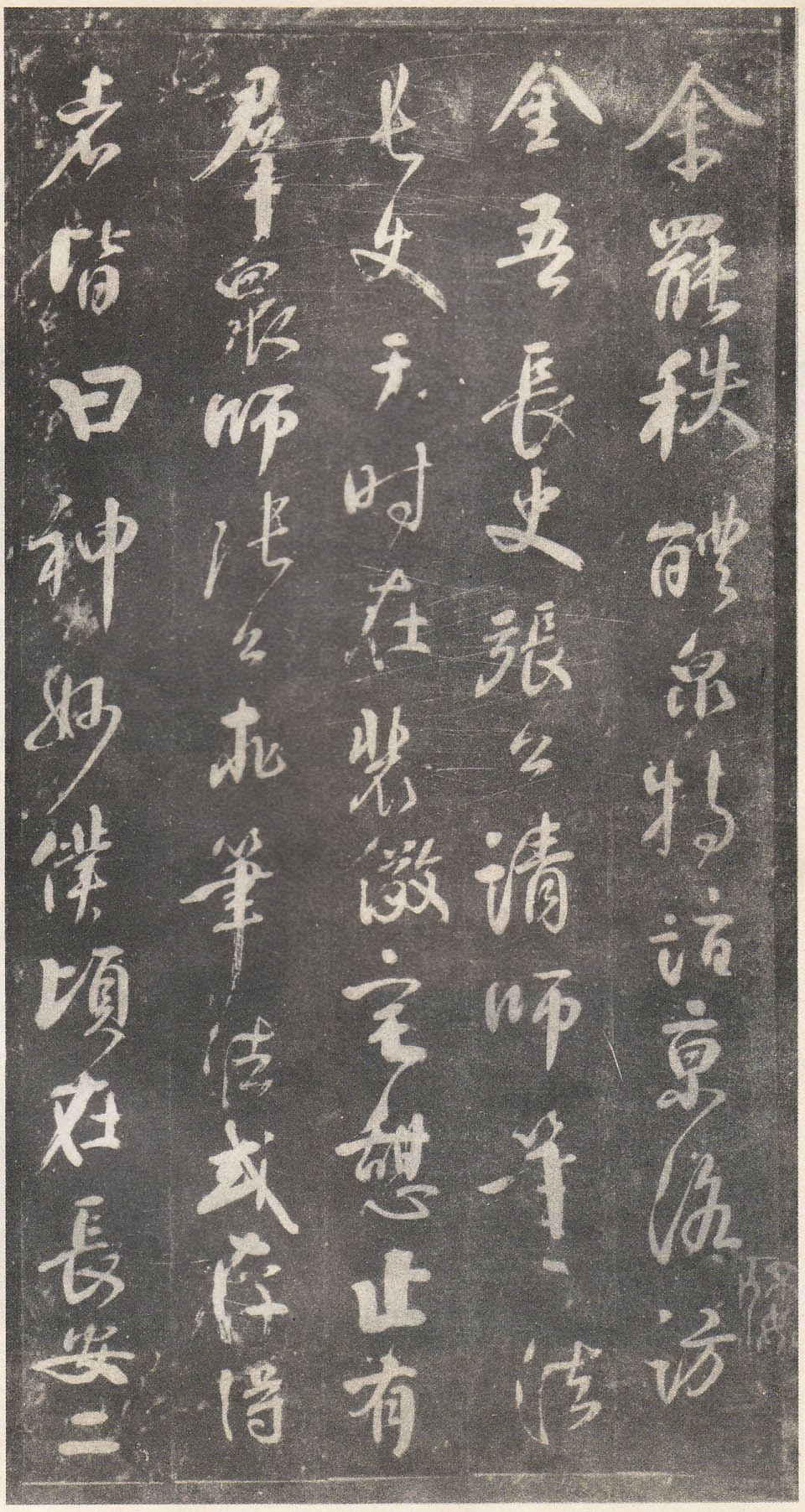 予罷秩醴泉,特詣東洛,訪金吾長史張公旭,請師筆法。長史于時(shí)在裴儆宅憩止,己一年矣。眾有師張公求筆法,或有得者,皆曰神妙,仆頃在長安師事張公,竟不蒙傳授,使知是道也。人或問筆法者,張公皆大笑,而對之便草書,或三紙,或五紙,皆乘興而散,竟不復(fù)有得其言者。予自再游洛丁,相見眷然不替。仆問裴儆:“足下師敬長史,有何所得?"曰:“但得書絹素屏數(shù)本。亦償論請筆法,惟言倍加工學(xué)臨寫,書法當(dāng)自悟耳。”