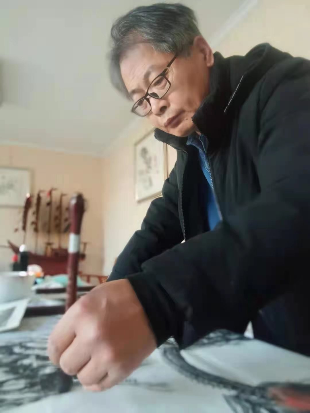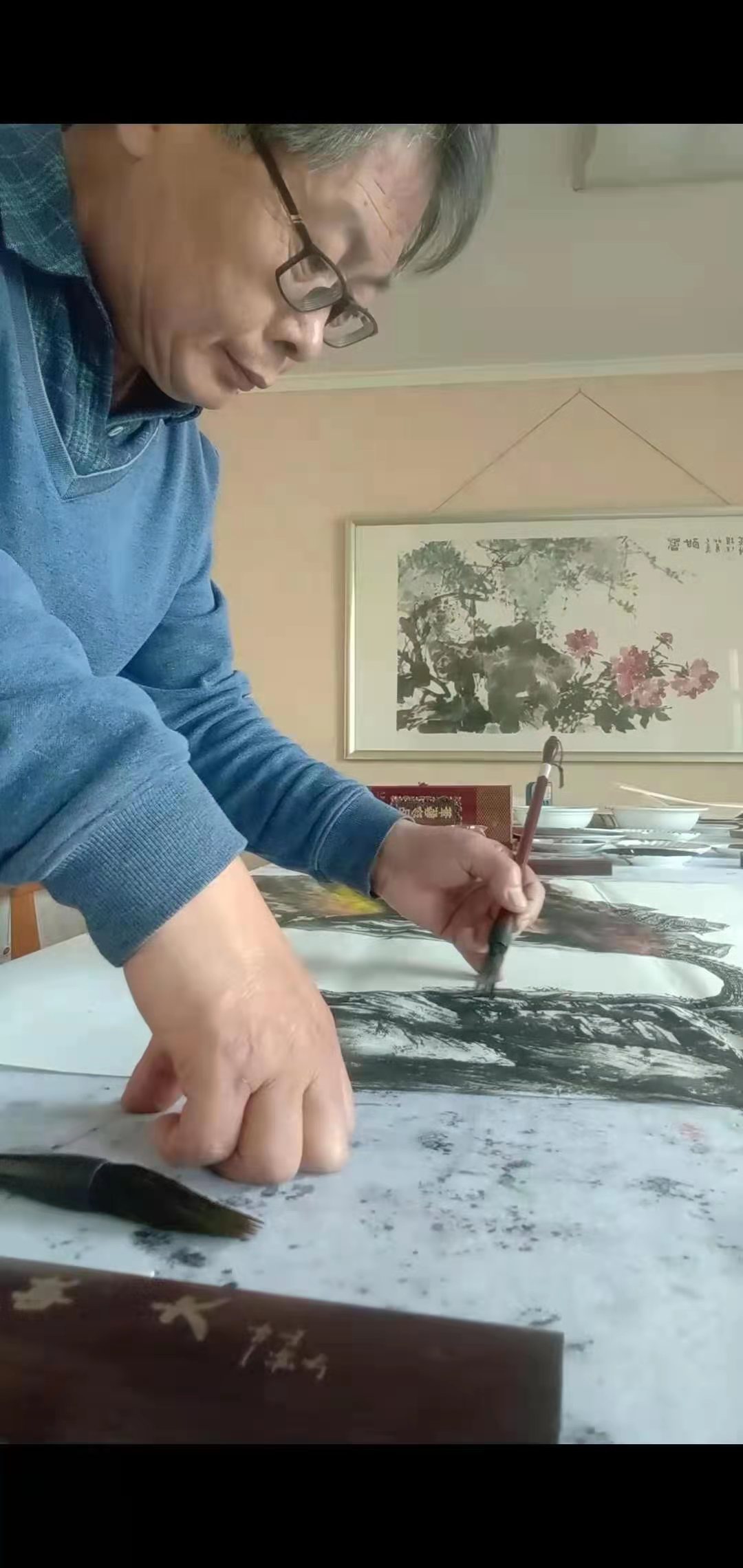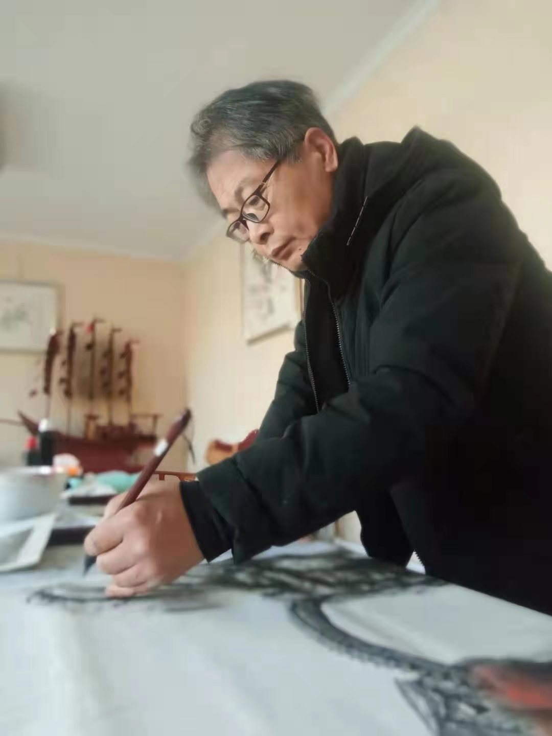 為慶祝中國共產(chǎn)黨建黨100周年暨高鐵濟南彩石段隧道順利開通,中鐵十二局特邀請中國現(xiàn)代書畫家協(xié)會著名畫家李道鄉(xiāng)老師為工地指揮部作畫展出,以示慶賀。