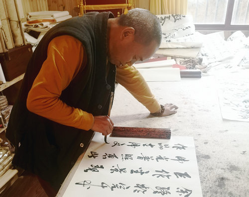 五雷禪寺當(dāng)家?guī)熋顨J法師以書法形式贊譽(yù)楊明學(xué)作品
