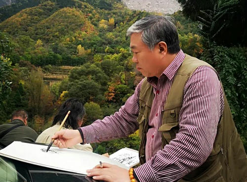 楊明學(xué)每天寫生回到駐地進(jìn)行調(diào)整