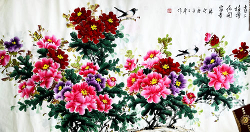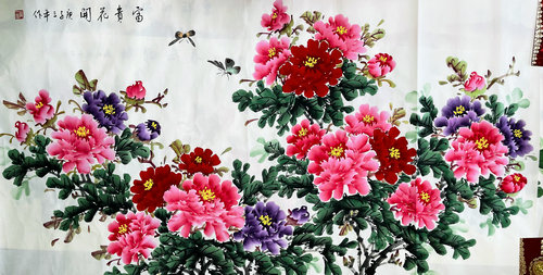三、 牡丹字畫,國花牡丹因為喻意富貴吉祥,所以一直深受大家的喜愛,而在家居擺放牡丹圖一般可選擇北方和南方,因為牡丹屬木,北方是堪輿上的“水”地,木得水生而茂盛繁榮;南方是“火”地,取木生火是興旺之象,此布局在近二十年中催旺了風(fēng)水上的九紫財星;由于西方為“金”,木不宜被金克,所以牡丹圖一般不宜放在西方。牡丹象征富貴、姣妍、繁華等,適合掛在客廳和臥室。