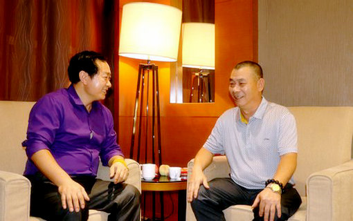 著名易經(jīng)研究專家陳業(yè)庭接受記者采訪時拍攝
