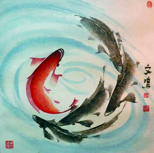 太極玄魚國畫始創(chuàng)人、著名書畫家程文鳴創(chuàng)作風(fēng)水畫《魚》系列作品