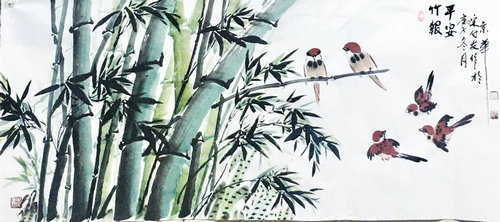 中央國家機關(guān)美術(shù)家協(xié)會會員、著名書畫家宋付友創(chuàng)作風(fēng)水畫《竹報平安》