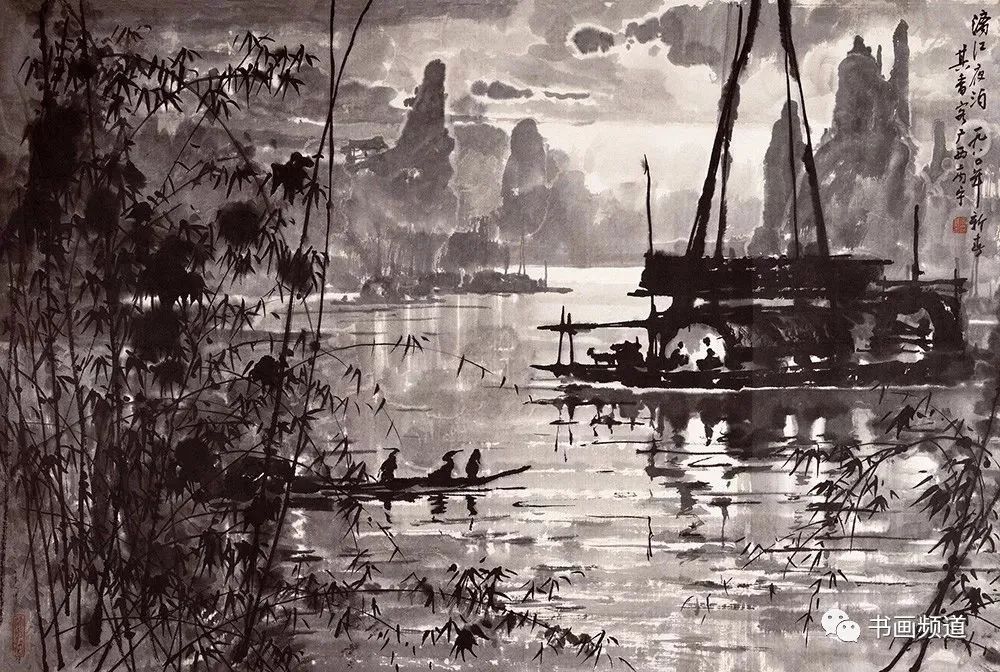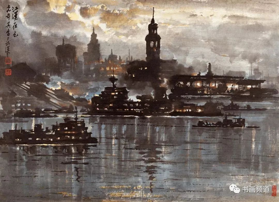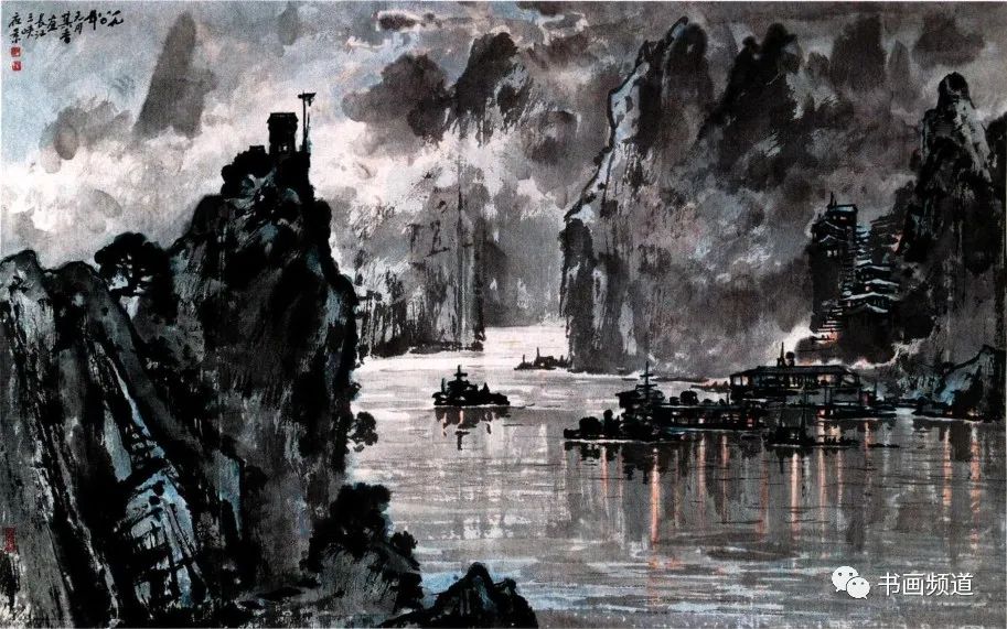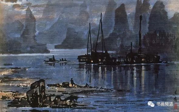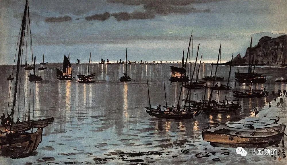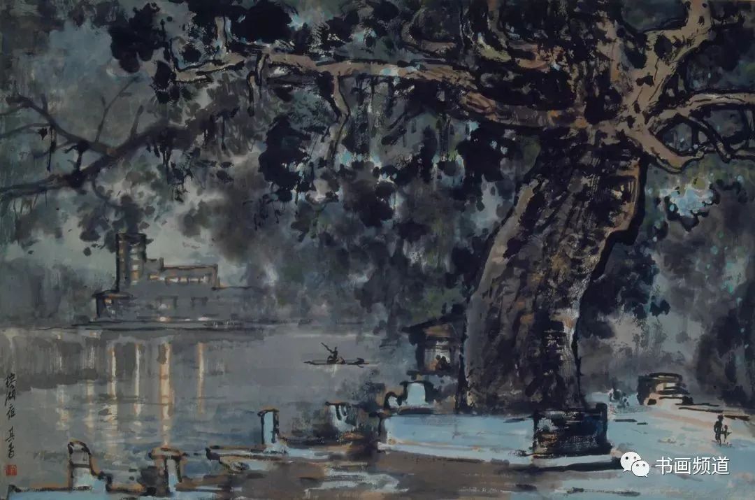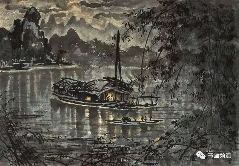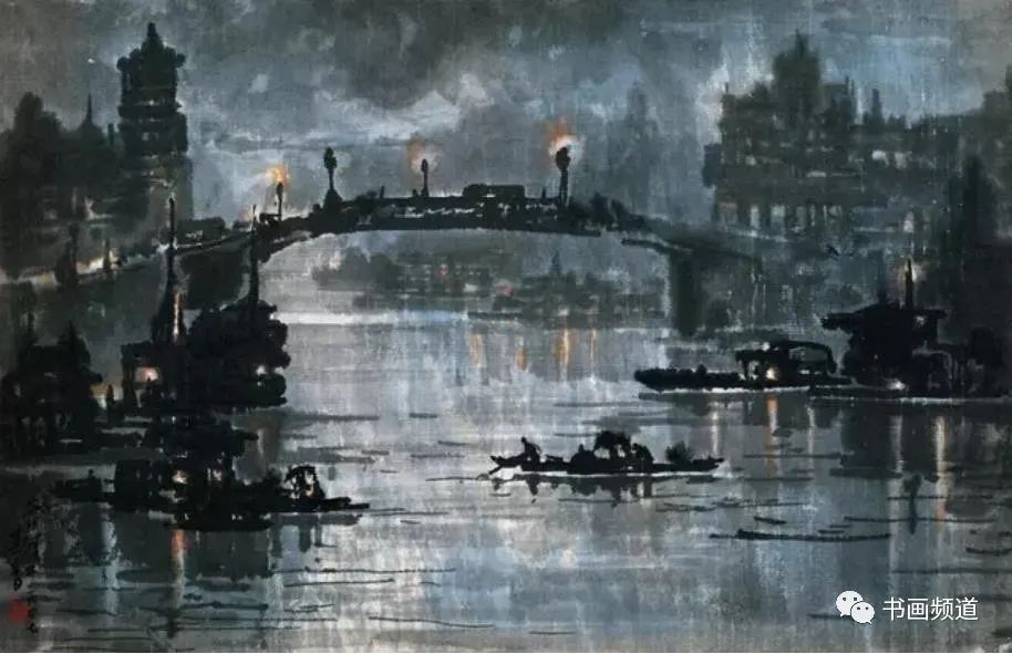 宗其香在走中西融合的美術(shù)道路上,打破傳統(tǒng)中國(guó)畫(huà)不能表現(xiàn)光感的限制,形成了自身藝術(shù)語(yǔ)言以及圓熟的中國(guó)畫(huà)夜景表現(xiàn)技法。有光的地方都是精心留白,光感自然,生動(dòng)含蓄。“宣紙落墨,一筆是一筆,不可更改。夜景要多留空白。‘熄燈’容易,留空白少了,想‘開(kāi)燈’就困難了。”再比如要用云的濃淡來(lái)表現(xiàn)月光。夜景里有月光,但不可把月亮直接畫(huà)出來(lái)。月亮藏在云彩后面,照亮云彩,云彩后邊是夜空。要用淡一點(diǎn)的墨把天空畫(huà)出來(lái),襯托云邊的光,再用淡墨把云與天統(tǒng)一出來(lái),使色調(diào)協(xié)調(diào)。宗其香后來(lái)還創(chuàng)作了三峽夜景、漓江夜景等作品,繼續(xù)夜景畫(huà)的探索與研究,為傳統(tǒng)山水畫(huà)開(kāi)辟了新面貌。