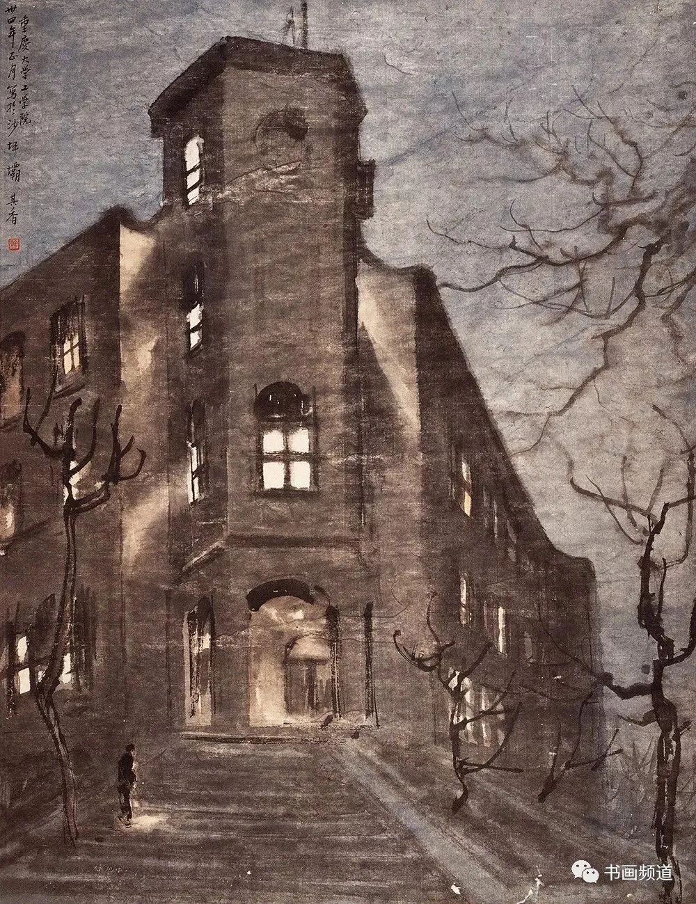 1939年,宗其香流亡求學(xué)到重慶,考入中央大學(xué)藝術(shù)專修科。當(dāng)時(shí),日本侵略軍對(duì)重慶進(jìn)行了長(zhǎng)期野蠻轟炸,面對(duì)家國(guó)飽受摧殘,個(gè)人前途渺茫,宗其香時(shí)常在夜幕下的江畔徘徊。山城江水,星光點(diǎn)點(diǎn),給人溫暖,引人遐思。宗其香觸景生情,開(kāi)始以夜景為題材創(chuàng)作水彩畫(huà)。他把畫(huà)作隨信寄給老師徐悲鴻求教,徐悲鴻頗為欣賞并建議:“古人畫(huà)夜景只是象征性的,其實(shí)并無(wú)光的感受,如《春夜宴桃李園圖》等。你是否試以中國(guó)畫(huà)筆墨融化寫(xiě)生,把燈光的美也畫(huà)出來(lái)?”