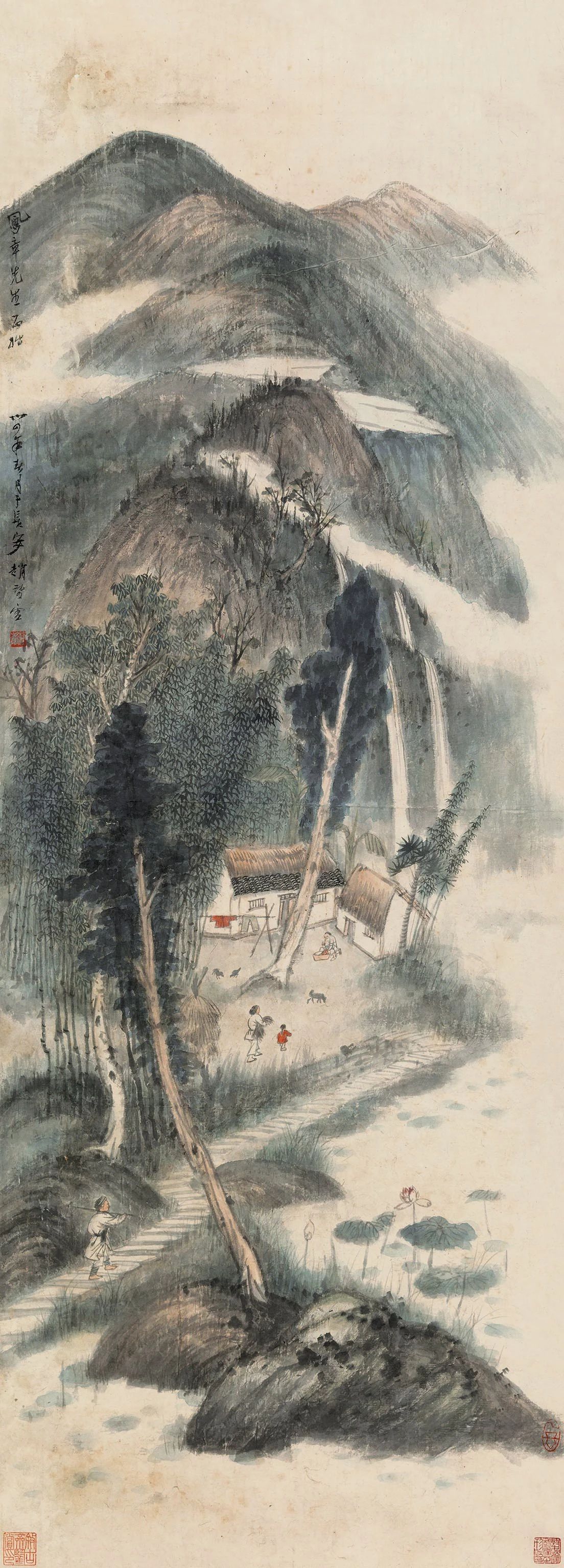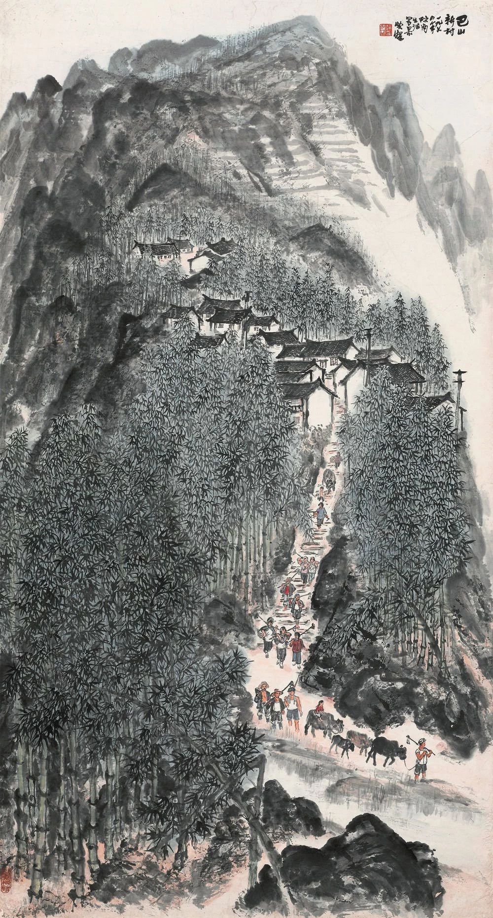 趙望云丨巴山新村 154cm × 82.5cm 設(shè)色紙本 立軸