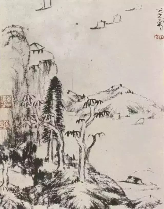 朱耷的山水畫成就絕不在其花鳥畫之下,