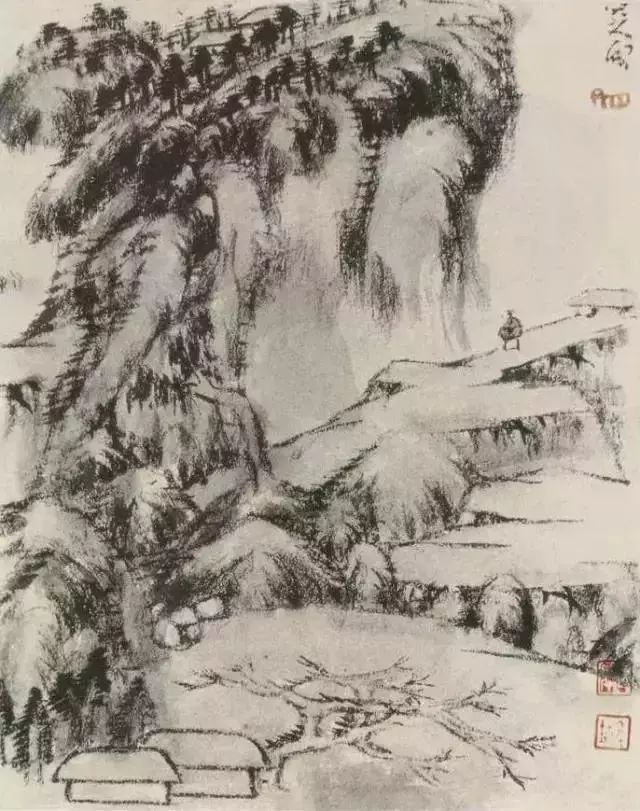 然后,稍澤以清淡水墨于峰巒坡壑,