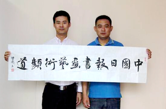 靳啟彪先生為《中國日報書畫藝術(shù)頻道》題寫刊名以示祝賀