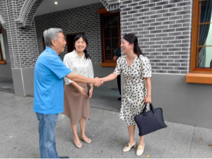 我們一行來到修舊如舊已成為區(qū)委辦公樓的黃海化學(xué)研究社舊址前合影留念,遙想當(dāng)年,感慨萬千。區(qū)委副書記何丹對(duì)侯德榜后人回家表示熱烈歡迎,并合影留念。
