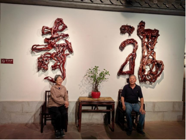 樹高千丈,不忘根。為了讓侯德榜后人五通橋之行,增光添彩。五通橋區(qū)區(qū)長魏陽東、常委、宣傳部長鄭重等特意安排了侯德榜后人一行參觀了為侯德榜故居制作“燕云在望,此志不忘”根書的中國根書創(chuàng)始人中國根書藝術(shù)館。讓大家大開眼界,一飽眼福。楊玉冰先生潛心研究根書藝術(shù)40多年。他將平面書法采用高山杜鵑樹根順其自然變?yōu)榱Ⅲw書法、行云流水、斬釘截鐵、巧奪天工、美侖美奐。其作品斐聲海內(nèi)外,成為暢銷珍品。