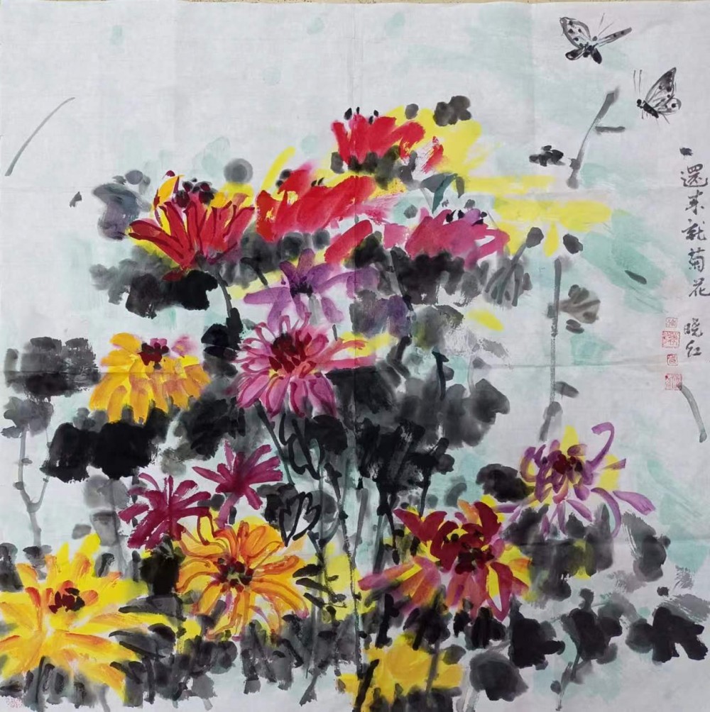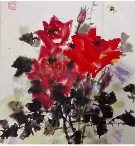 曉紅老師是一個天性浪漫的人,她畫畫、寫詩都無所拘束。她最擅長畫玫瑰和月季,她畫出來的玫瑰與眾不同,別有一番風味。她的畫萌萌的、拙拙的很天真。她長期到基層教學生畫畫,組織到各單位、各個社區(qū)宣傳傳統(tǒng)文化、推廣詩詞楹聯(lián),每天激情滿滿,持續(xù)為增強民族自信心、為推廣傳統(tǒng)文化而呼號!