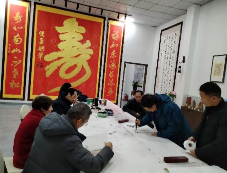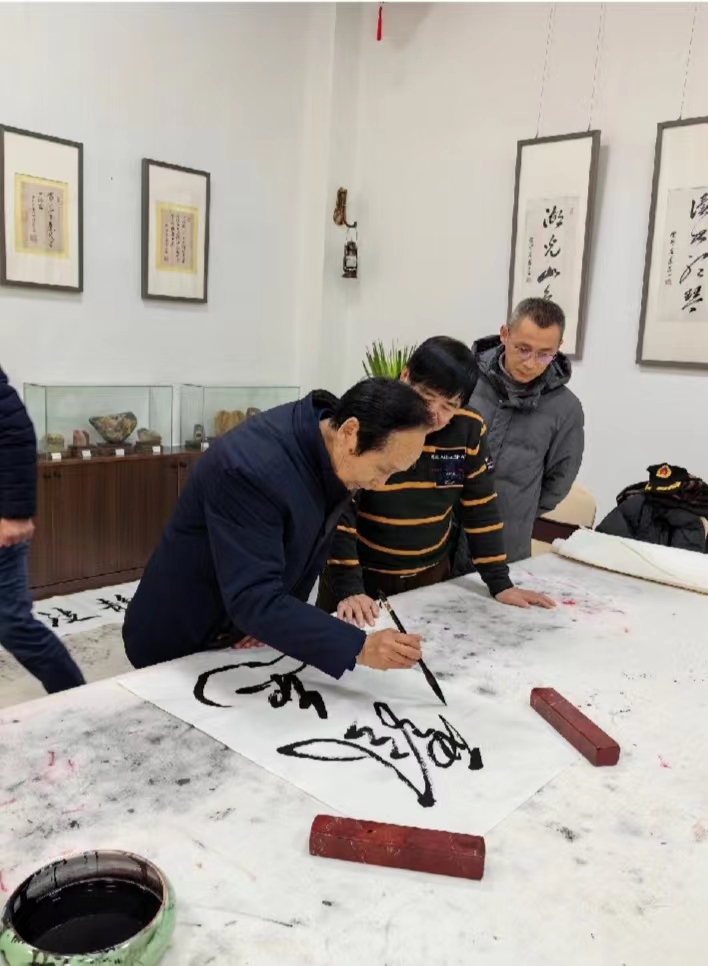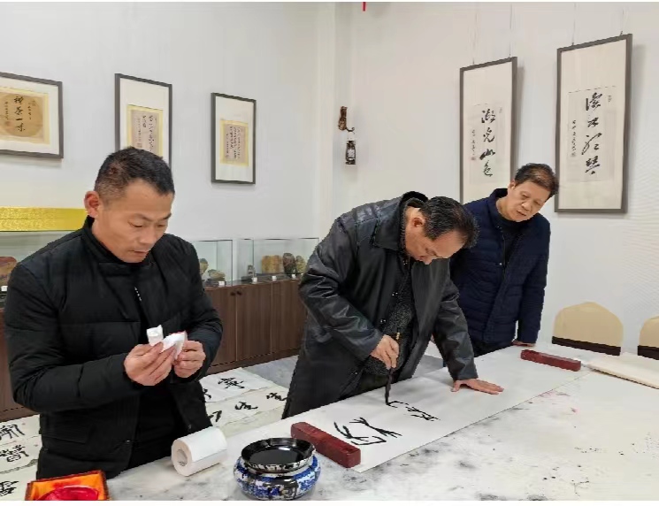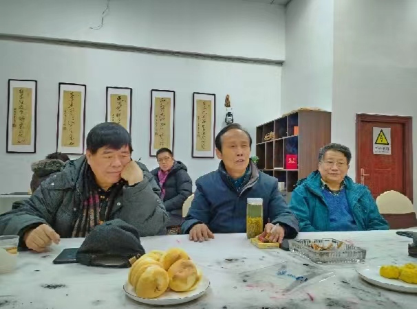 徐雙喜和夫人傅華英、何勝勇和夫人王麗艷及藏敏、彭方計(jì)、俞苗鋒、何建明等老師踏雪門(mén)外,笑臉相迎。室外,天寒地凍、大雪紛飛。室內(nèi),歡聲笑語(yǔ)、翰墨飄香、溫暖如春。