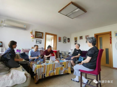 走進(jìn)其長(zhǎng)孫侯盛锽(右二)家與他和夫人方瑛(右一)合影