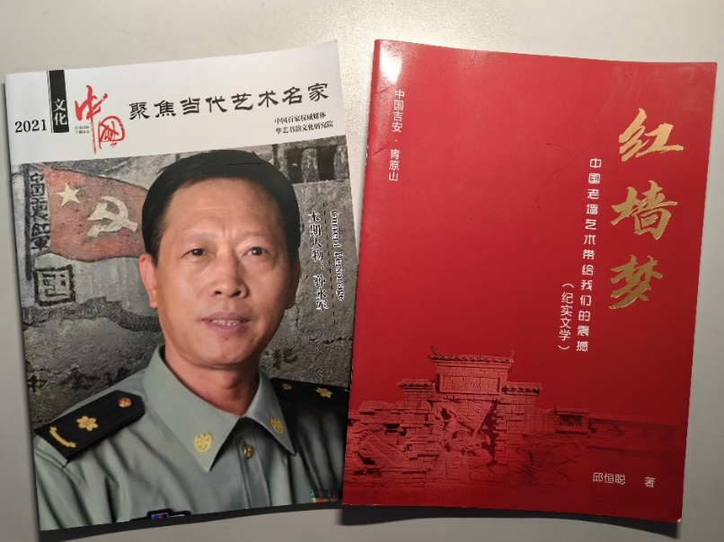 臨別時,劉崇明還贈送我《文化中國—聚集當(dāng)代藝術(shù)名家》和《紅墻夢—中國老墻藝術(shù)帶給我們的震撼》兩本雜志。讀罷得知劉崇明攜手曾勇、舒斯一兩位志同道合者,坊間稱為“三君子”在當(dāng)年的革命搖籃井岡山揮舞椽筆書寫著紅色傳奇。他們以三顧茅廬之誠感動了天津的藝術(shù)大師孫永軍,共同的理想讓他們走到了一起。孫永軍將他在天津的紅墻藝術(shù)展搬到了井岡山。劉崇明等旗下的中紅投公司投巨資讓紅墻藝術(shù)展找到了歸宿,充實了紅色教育基地的內(nèi)涵。