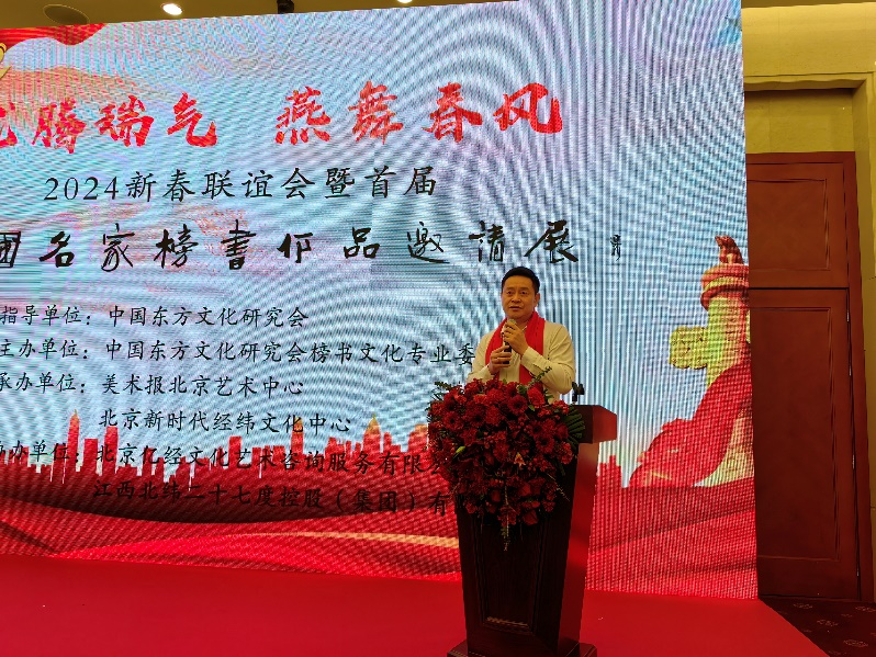 劉崇明慷慨支持紅色教育、弘揚傳統(tǒng)文化,為在北京人民大會堂舉行的榜書名家邀請展給予了大力支持。在盛典晚宴上,劉崇明應(yīng)邀作了熱情洋溢的講話,通篇飽含哲理、壯志凌云、富有激情、充滿自豪、展示才情,贏得全場陣陣掌聲。