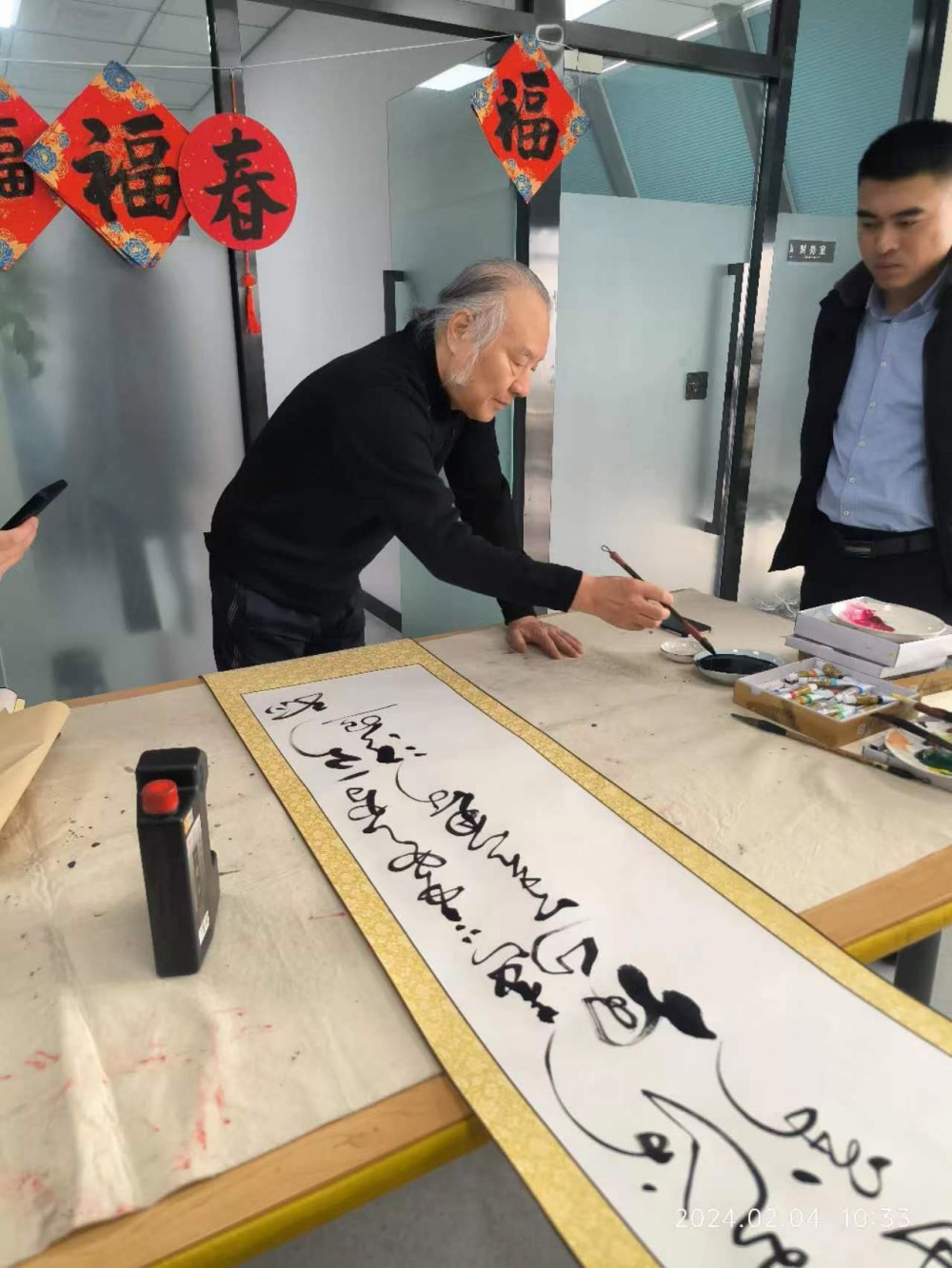 在2024年2月4日這個(gè)立春的喜慶日子里,順義美協(xié)為了響應(yīng)北京和順義文聯(lián)、北京市美協(xié)的號(hào)召,組織部分書畫家下基層送福送春聯(lián)。當(dāng)天我們來(lái)到的企業(yè)是“北京市玖典律師事務(wù)所”,受到律所領(lǐng)導(dǎo)張楠律師和其他律師的熱情接待。此時(shí)律所到處張燈結(jié)彩,高朋滿座,好一幅喜慶過(guò)大年的年畫。