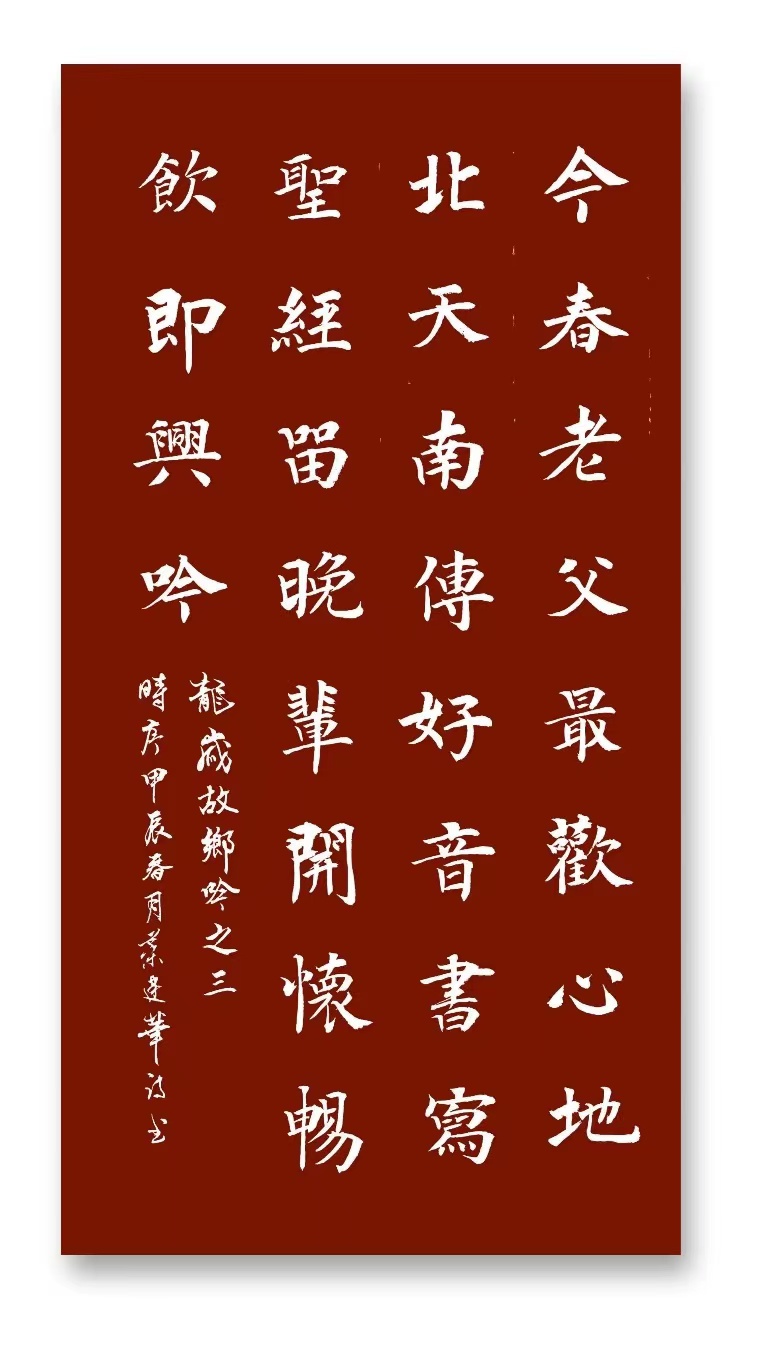 疫情過后,老父親知道天南地北的家人晚輩龍年春節(jié)會(huì)回來與他團(tuán)聚。為此,他召集弟弟妹妹們對接待工作作出了周到安排。老父親則有空就書寫毛主席詩詞,他能將三四十首毛主席詩詞一字不差地背誦下來,并揮毫潑墨,裝訂成冊。我去年為他篆刻了印章,他準(zhǔn)備春節(jié)期間將他的作品送給后代晚輩留作紀(jì)念。他告訴我,近年來,他已書寫裝訂了90多冊毛主席詩詞集,已送出去了大部分。老爸在與我交流時(shí)說,我如身體不舒服,就寫毛主席詩詞,通過思考、記憶、揮毫、活動(dòng),身體就舒服了,書寫毛主席詩詞成為我的一種健身方式。書法能修身養(yǎng)性此語不虛,從我老父親身上得到了證明。