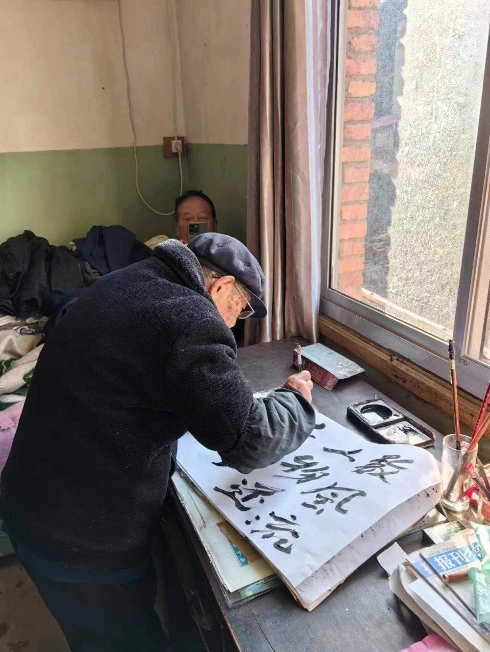 老父親在揮毫毛主席詩詞