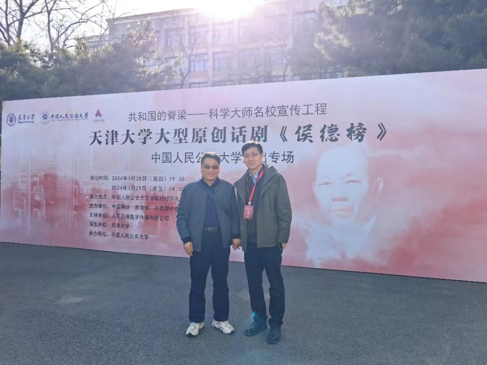 經(jīng)化學(xué)工業(yè)出版社總編室副主任趙媛媛和天津大學(xué)團委副書記席皓格邀請安排,我攜愛人金鳳沐浴春光,穿城30多公里追星追到位于木樨地的中國人民公安大學(xué)觀賞由中國科協(xié)、教育部、共青團中央、中國科學(xué)院、中國工程院、中國文聯(lián)主辦,中國人民公安大學(xué)承辦,共和國的脊梁—科學(xué)大師名校宣傳工程天津大學(xué)大型原創(chuàng)話劇《侯德榜》。