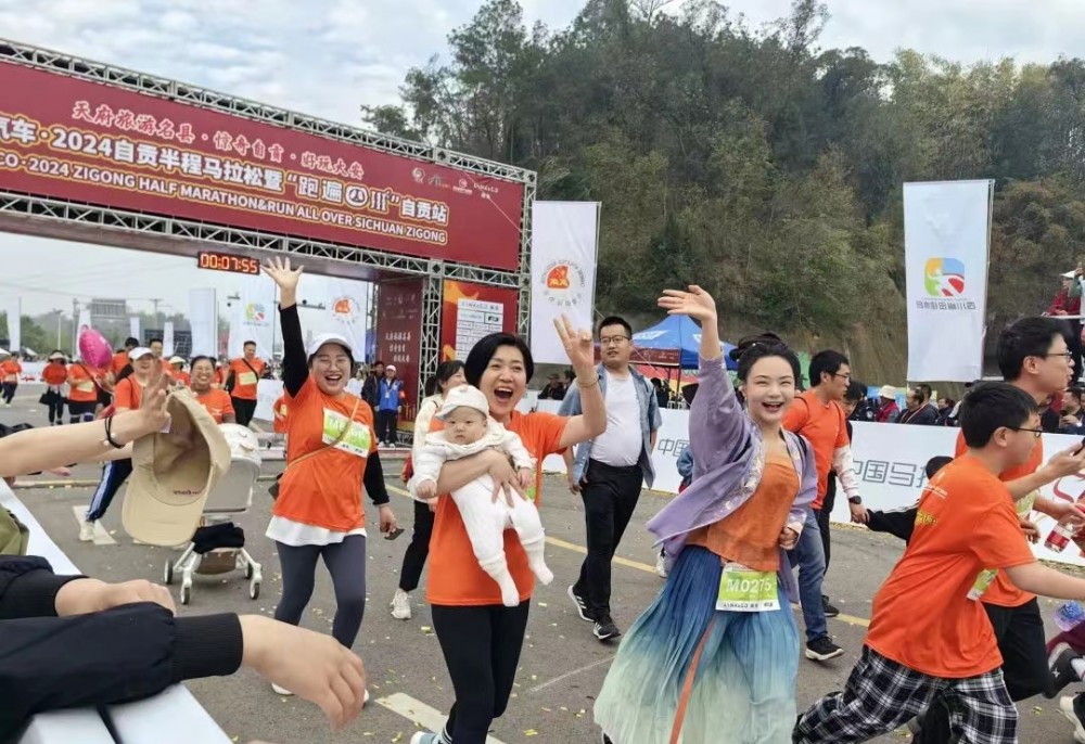 說(shuō)到這次半程馬拉松賽事,給童玲印象最深的是兩個(gè)抱著孩子參加比賽的年輕媽媽。其中一位是自貢市田徑協(xié)會(huì)賽事工作人員的兒媳婦,她說(shuō)自己去年就參加了這項(xiàng)半程馬拉松比賽,事后才知道自己已經(jīng)懷孕了。如今,她的兒子雖然只有四個(gè)月,但是這位年輕的馬拉松愛(ài)好者媽媽覺(jué)得帶著孩子一起參加賽事很有意義,便和孩子的姥姥、奶奶一起前來(lái)參加。比賽結(jié)束后,童玲特意抱著這個(gè)可愛(ài)的小寶寶和全家合影,因?yàn)檫@個(gè)小寶寶堪稱參加這次比賽年齡最小的“選手”。