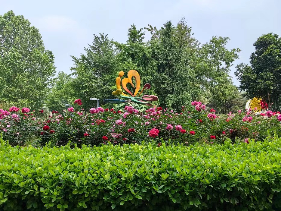 聽(tīng)朋友介紹,如今花博園管理修整得越來(lái)越好。此時(shí)正值北京市花月季盛綻季節(jié),景色絢麗、空氣清新、游人很多。聽(tīng)完朋友的點(diǎn)贊,燃起了我們故園重游的濃厚興趣。于是,我和金鳳便開(kāi)車(chē)前往,車(chē)停免費(fèi)停車(chē)場(chǎng),進(jìn)得園內(nèi)果然感覺(jué)到今非昔比,如同大姑娘長(zhǎng)大十八變。舉目遠(yuǎn)眺,風(fēng)景如畫(huà),我們猶如在畫(huà)中。膠道整潔、樹(shù)木翠綠、草露欲滴、百花綻放、蜂飛蝶舞、游人含笑。園內(nèi)有汗流浹背的跑步者,有乘坐童車(chē)的小朋友,有吹笛撫琴的音樂(lè)人。然而,最搶風(fēng)景的當(dāng)屬一群群穿著艷麗的大媽們。她們?cè)谝惶幪幘坝^(guān)前笑聲朗朗、擺姿亮相,與萬(wàn)紫千紅的花兒相映成趣,大有使花兒害羞之狀。