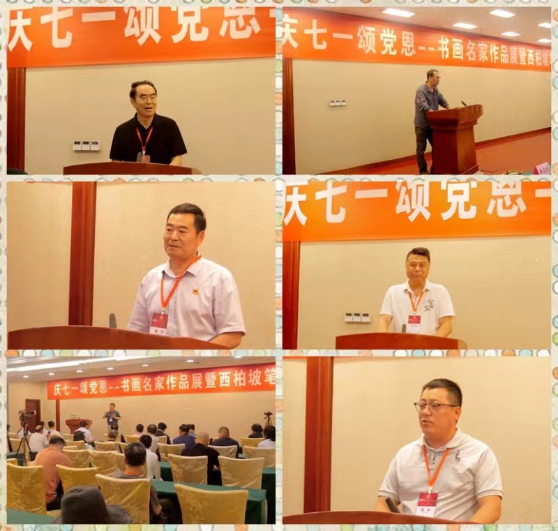 2024年7月1日,“慶七一頌黨恩--書畫名家作品展暨西柏坡筆會(huì)”在西柏坡賓館拉開序幕。河北電視臺(tái)王冉主持,西柏坡紀(jì)念館副館長(zhǎng)李國(guó)強(qiáng)致歡迎辭,活動(dòng)策展人靳新國(guó)、王海濤,組委會(huì)執(zhí)行主任蓋進(jìn)波,軍旅書法家楊廷欣,書畫家周殿勝、程文鳴、協(xié)辦單位賈長(zhǎng)彬和我應(yīng)邀致辭發(fā)言。大家分別對(duì)革命圣地西柏坡的歷史地位,此次活動(dòng)的重要意義及活動(dòng)策劃、征稿、入展等情況作了介紹。